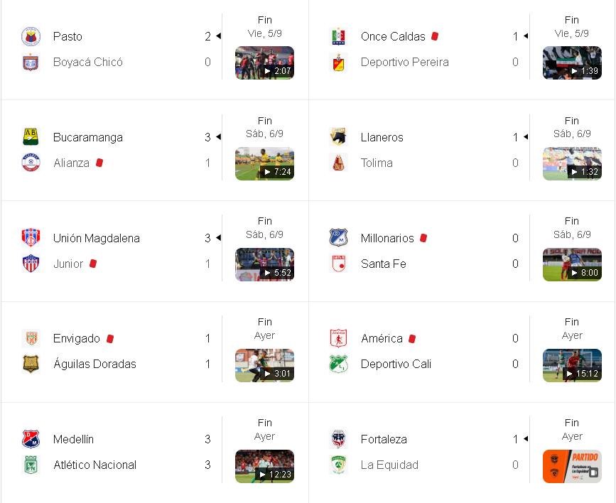 - Millonarios 0 – 0 Santa Fe: El clásico capitalino terminó sin goles, aunque con mucha lucha en el campo.